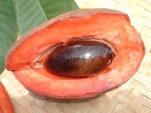 The fruit is shaped like a mango and usually grows 5-10 inches in length. Because mamey is a solid fruit, it can weigh up to 5 pounds but generally less than 7 pounds. The tropical exotic fruit has a scruffy brown surface skin on the outside. The Mamey is ready to eat and fully ripe when you scratch the skin and the inside show a reddish kind of pinkish color. To eat the mamey, cut the fruit in half and remove the seed or seeds. The mamey can have from one seed to four seeds inside. Once it’s cut in half, the fruit has a sweet taste to go with a bright color. Some people compare the mamey taste to a mango or a cantaloupe but they all agree it has a unique taste.