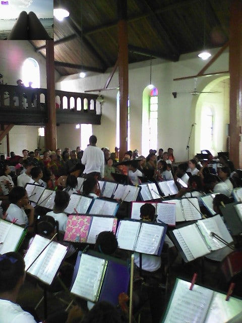 About 80 members of the orchestra that day, managed to fit into St. George’s Church. I did an audio recording of one piece I love, “In A Gentle Rain” by Robert W. Smith Listen and enjoy it. All of the sounds you hear are from stringed instruments, and the keyboard which I played, clicking fingers, hitting thighs with our hands, shaking of a zinc sheet and our voices. Hence, after our full performance of about ten pieces, we all went to tour Charlestown, home of the Maroons.