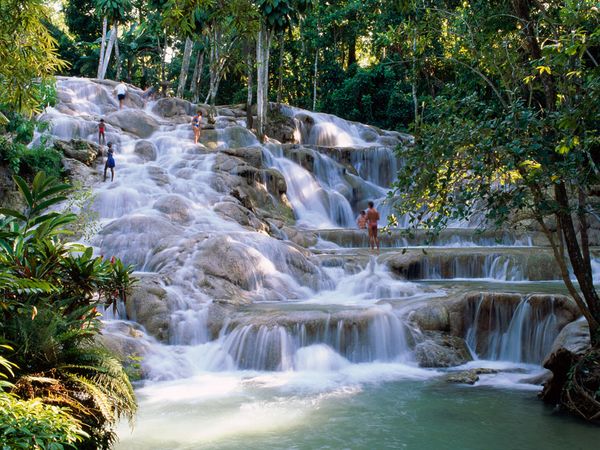 Once a small fishing village, hotels line the beach. The city sits between the ocean and lush rainforests, waterfalls, and rivers. Nearby is Dunn’s River Falls, a stunning terraced mountain waterfall reaching nearly 600 feet high.