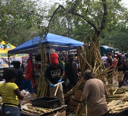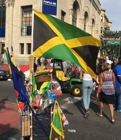 Labor Day Parade Celebration and vendors selling Flags from many countries including the Jamaican Flag.