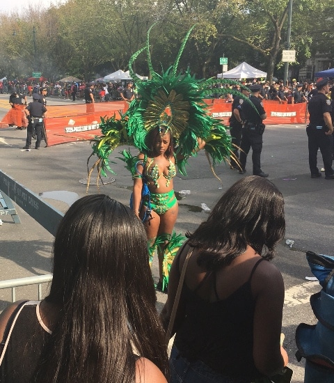 People travel from near and far to come to the Parade. They all come to Brooklyn to enjoy the carnival and watch the celebrations take place. The parade goes on for four days leading up to the parade. Labor Day is always the first Monday in September. Today, Millions of parade enthusiasts lined the streets most of them decked out in their colorful clothing and costumes. Some parade goers come to the route wearing their decorated tee shirts and waving their flags.