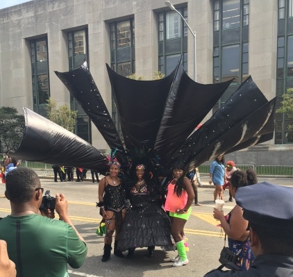 All the colors that many of the people are wearing generally represent their individual islands. But everyone usually have one thing in common: enjoying the music, food and drinks and watching the bands play. The parade starts East of Utica Ave on Eastern Parkway and go West towards the Brooklyn Museum. At the Brooklyn Museum the judges are lined up to judge the masqueraders on their extravagant floats, costumes and performance to decide who the winning band will be. Â The masqueraders are usually decked out with extravagant feathered head dresses, colorful beaded, feathered and sequenced costumes and floats. They dance to the pulse of the Steel Band and DJ sounds with the parade goers on the sidewalks following along decked out to represent their country of birth or their parents or grandparents.
